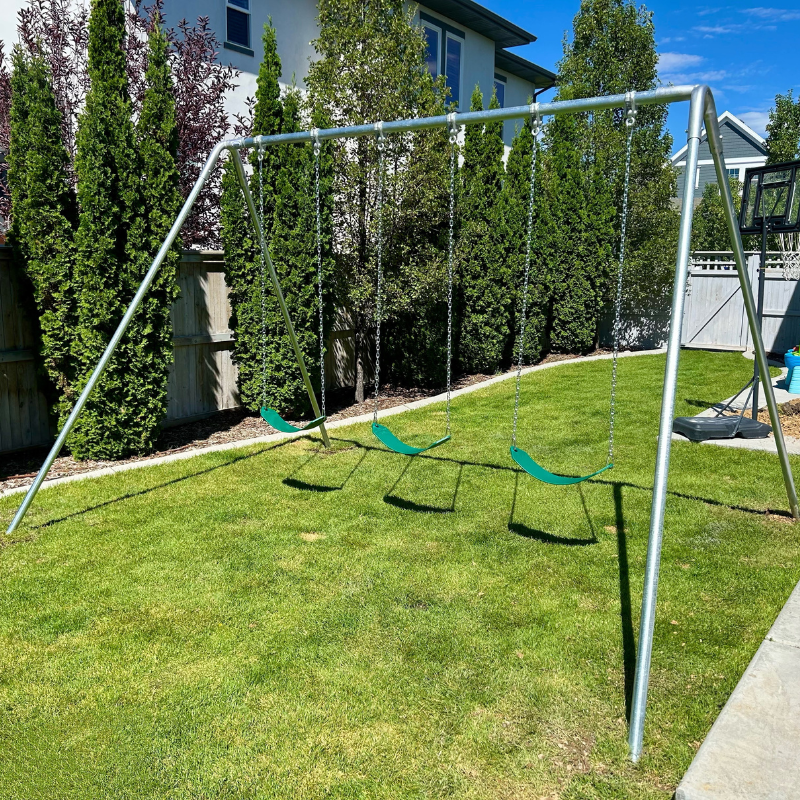 We are pleased to offer powder coating on our swing sets. Only the metal frame gets powder coated. This option offers a very clean, professional look to your swing set. Rust won’t be an issue with either powder coating or standard galvanized steel (you can’t go wrong either way!) Please note that powder coating will add an additional 2 weeks to the lead time.