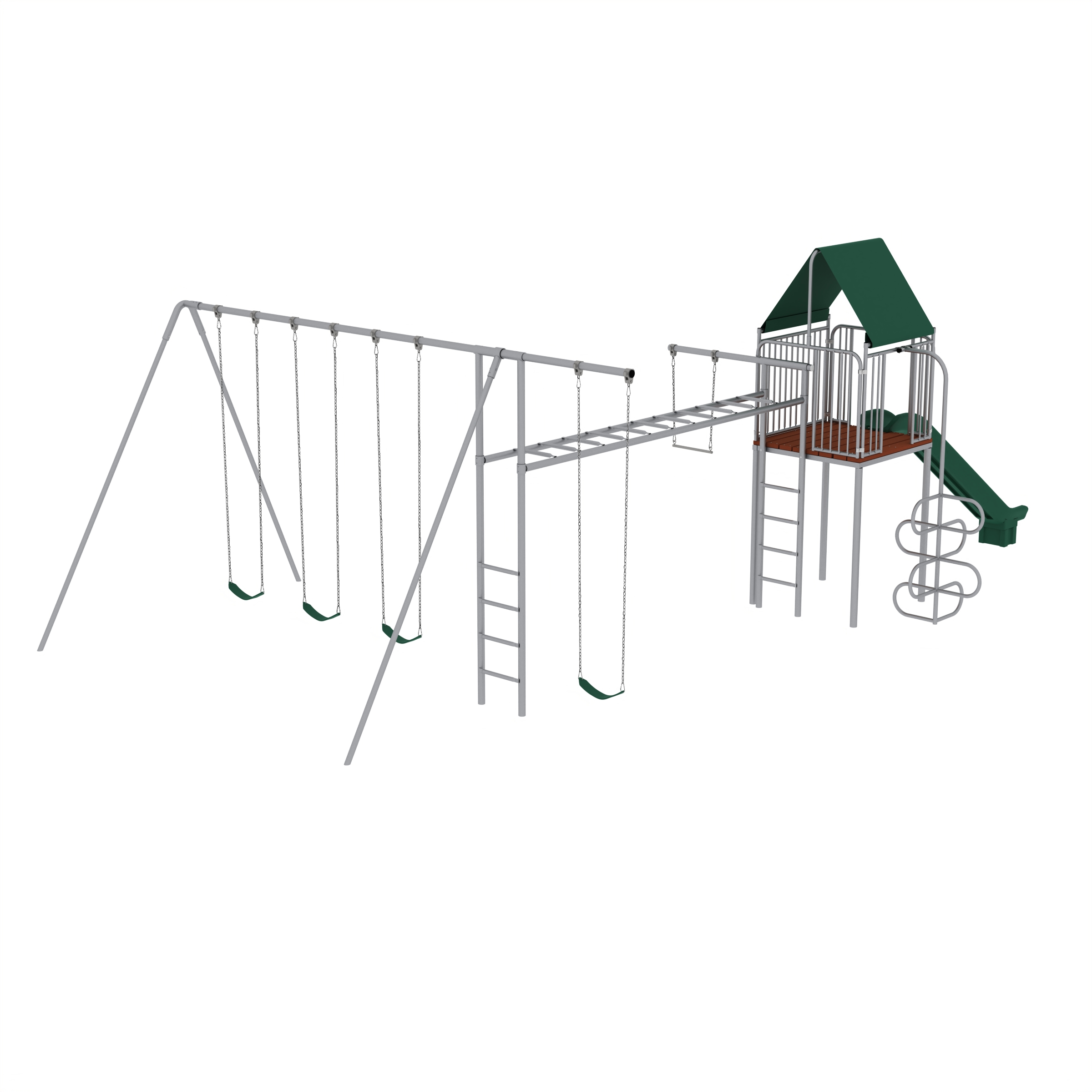 We are pleased to offer powder coating on our swing sets. Only the metal frame gets powder coated. This option offers a very clean, professional look to your swing set. Rust won’t be an issue with either powder coating or standard galvanized steel (you can’t go wrong either way!) Please note that powder coating will add an additional 2 weeks to the lead time.