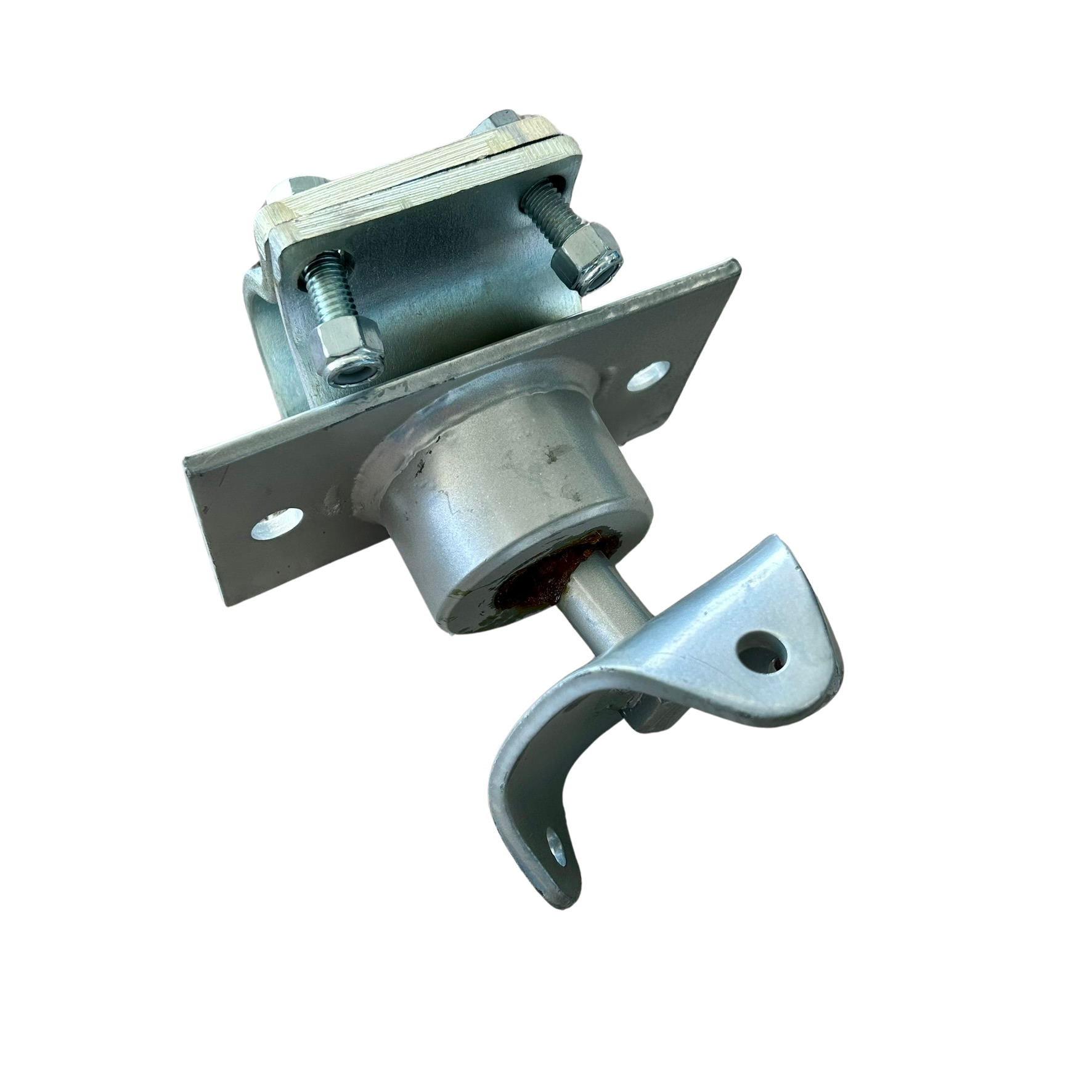 Designed for tire swings, this tire swing knuckle has a freely rotating pivot and 3 connection points for the chain. It is made for a 2 3/8″ O.D. top rail.